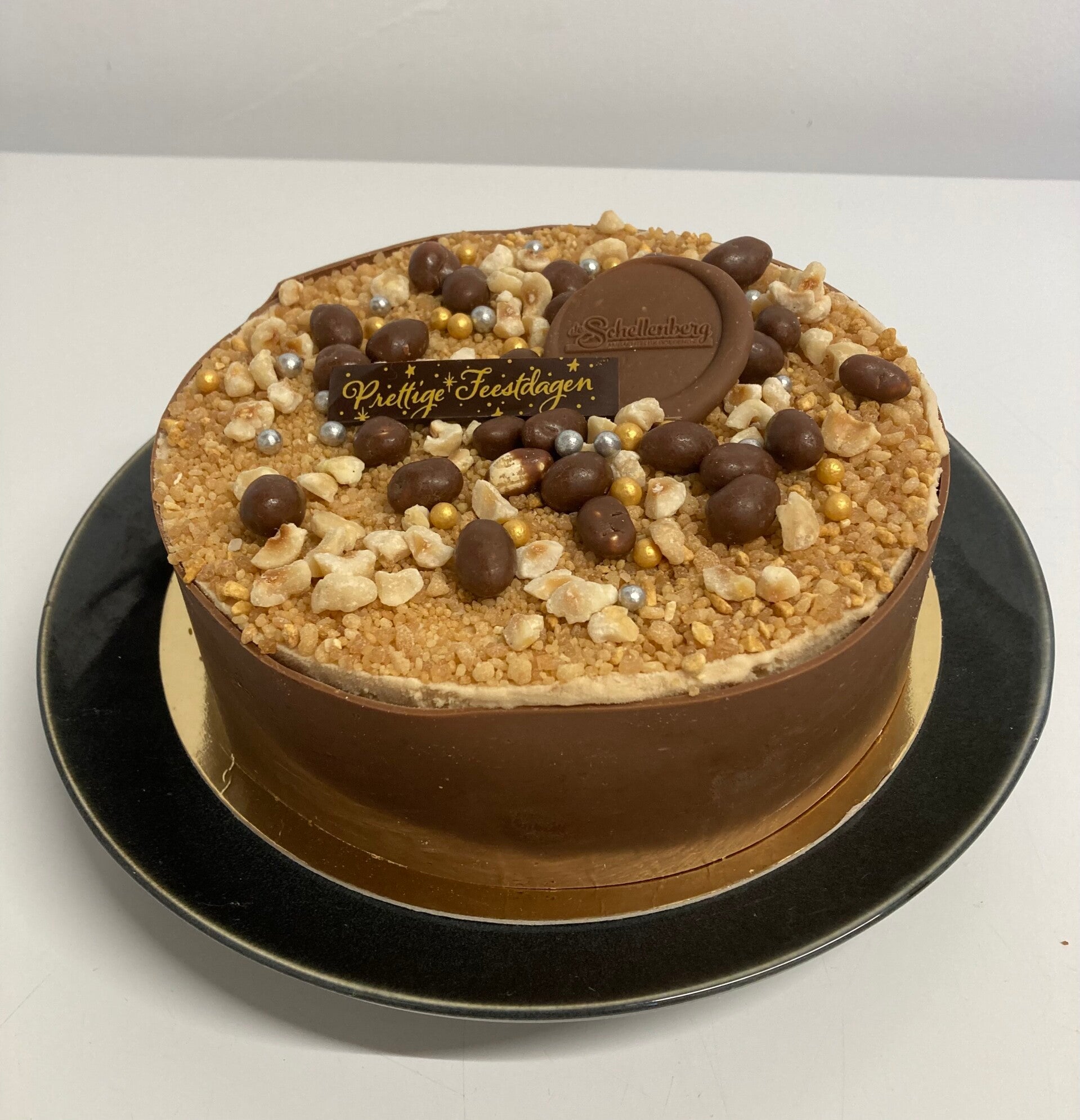 Deze hoogwaardige taart heeft als onderlaag een krokante bodem van noten, daarboven rijkelijk gevuld met mascopone en hazelnoot-ijs afgewerkt met een laag heerlijke notenmix.